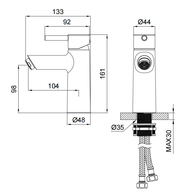 - Комплектация Смеситель / Гибкая подводка / Монтажный комплект
