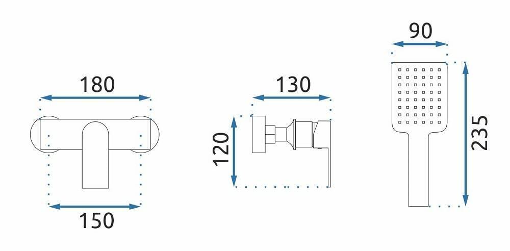 - Размер ручного душа: 90*235 мм