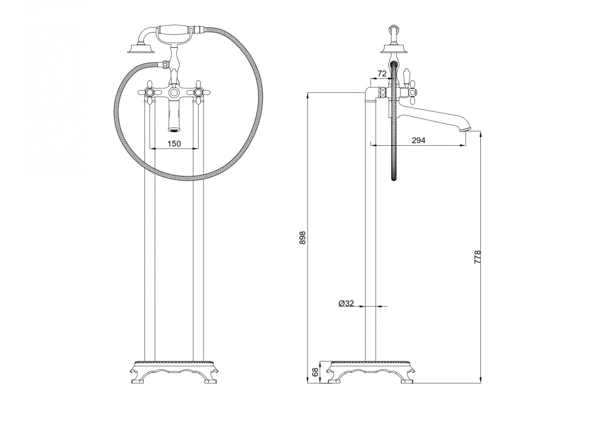 - Длина шланга, см 150
