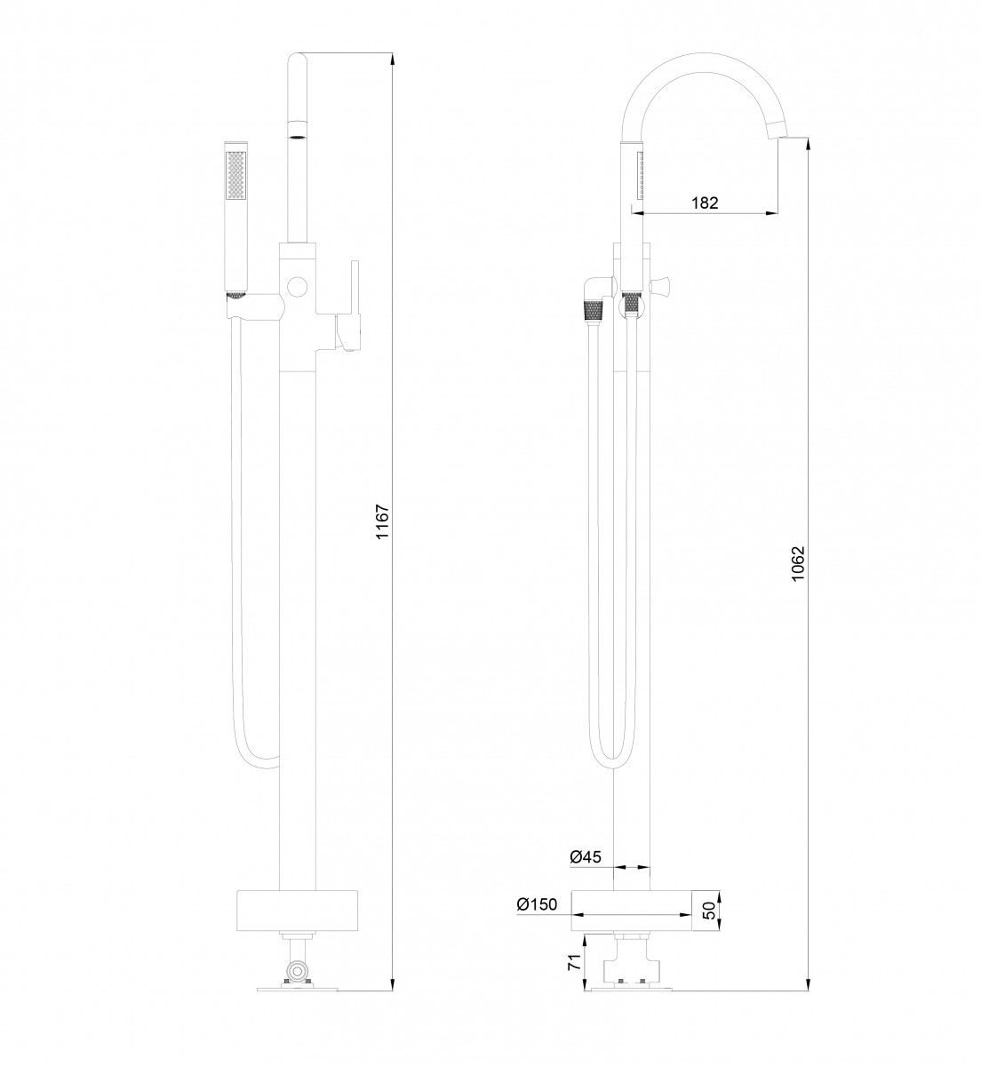 - Длина шланга, см 150