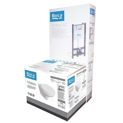 - Комплектация: Инсталляционная система Roca Active, Mateo подвесной унитаз, сиденье с функцией мягкого закрывания, клавиша смыва