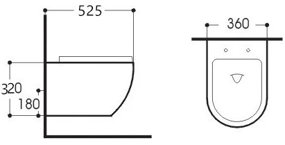 Унитаз подвесной безободковый 525x360x320 мм, тонкое сиденье с механизмом плавного закрывания, крепеж.Страна Россия