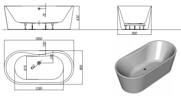 - Тип: отдельностоящая ванна