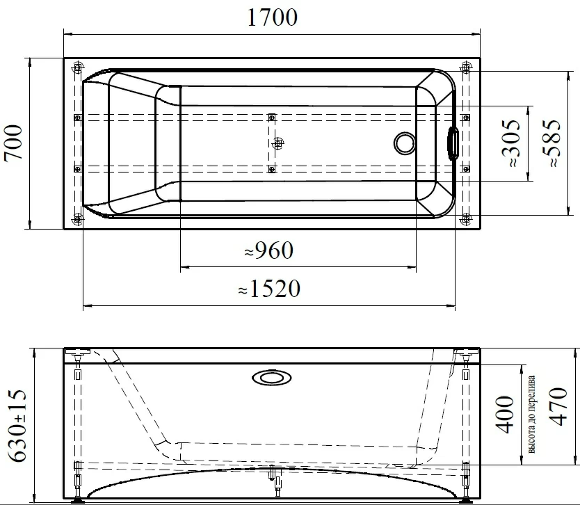 - Толщина листа ванны, мм 4-5