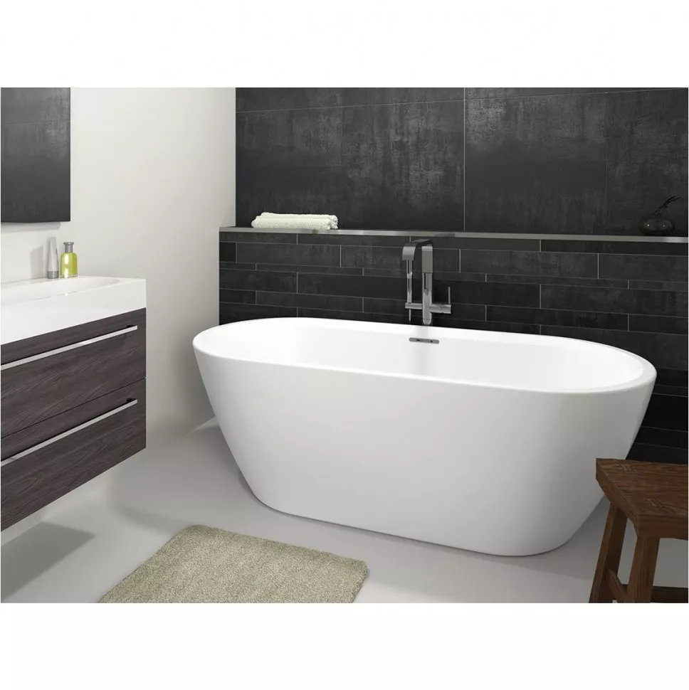 Отдельно стоящая, глянцевая белая акриловая ванна RIHO Inspire 160х75 FALL (заполнение через перелив) с двойными стенками, со встроенным переливом и нажимным донным клапаном.