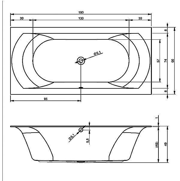 Ванна акриловая Riho Linares B144001005 200*90 см (белый)