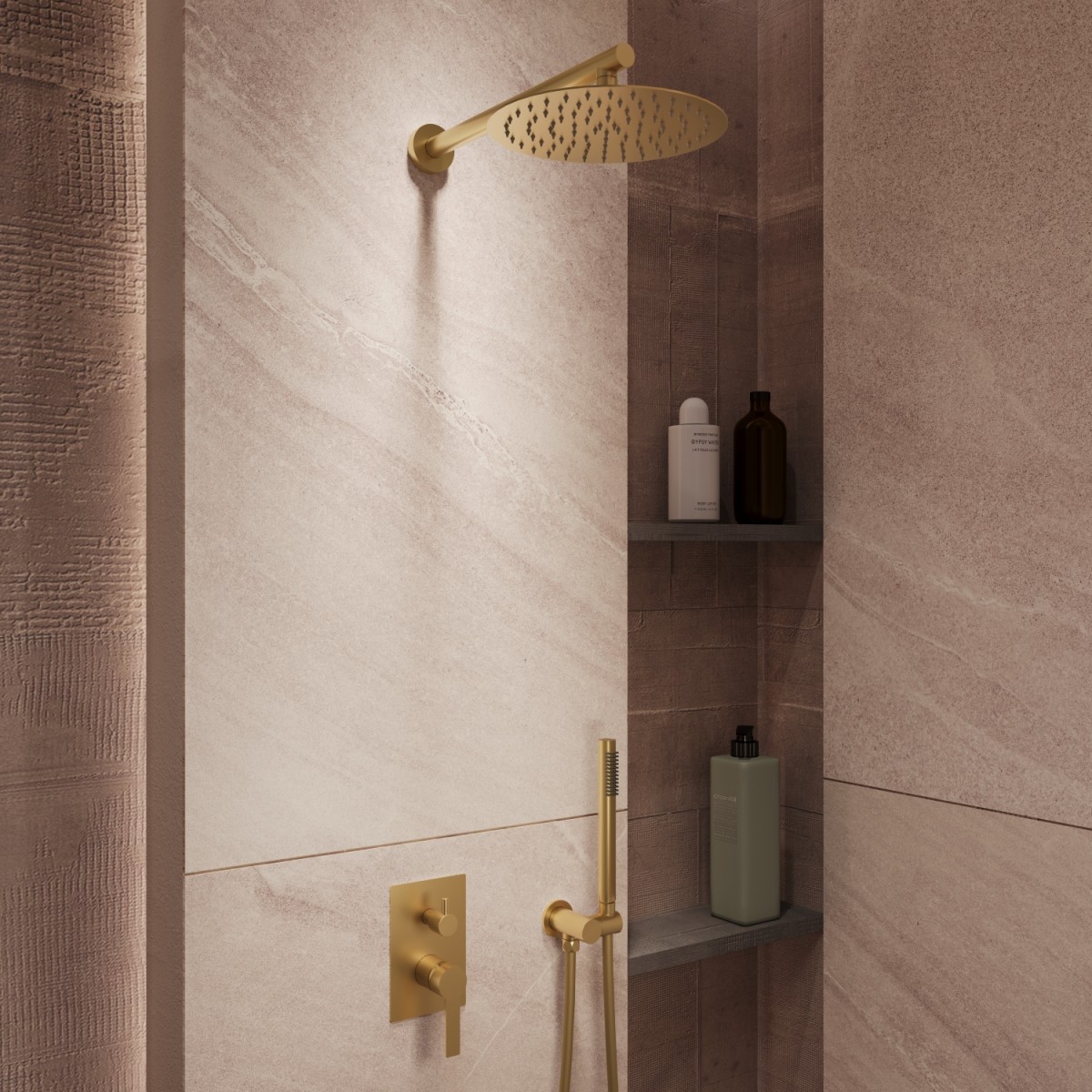 - Верхний душ, ручной душ, смеситель со встраиваемой частью